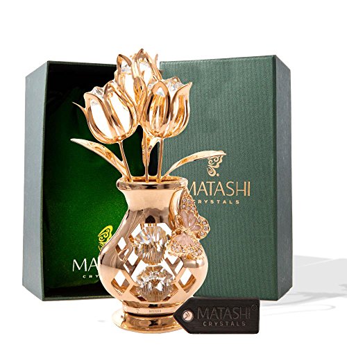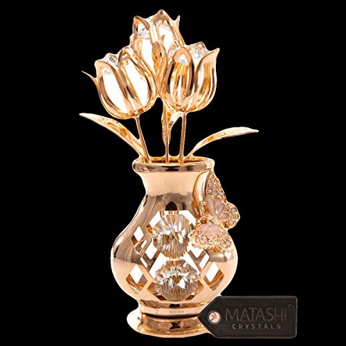 [Product Information]- EYE-CATCHING DESIGN: 3 gold tulips reach towards the sun from within a curvy table top vase with a Butterfly figurine perched on the side. Crafted with quality materials like 24K Gold and studded with precision cut Matashi® crystals.