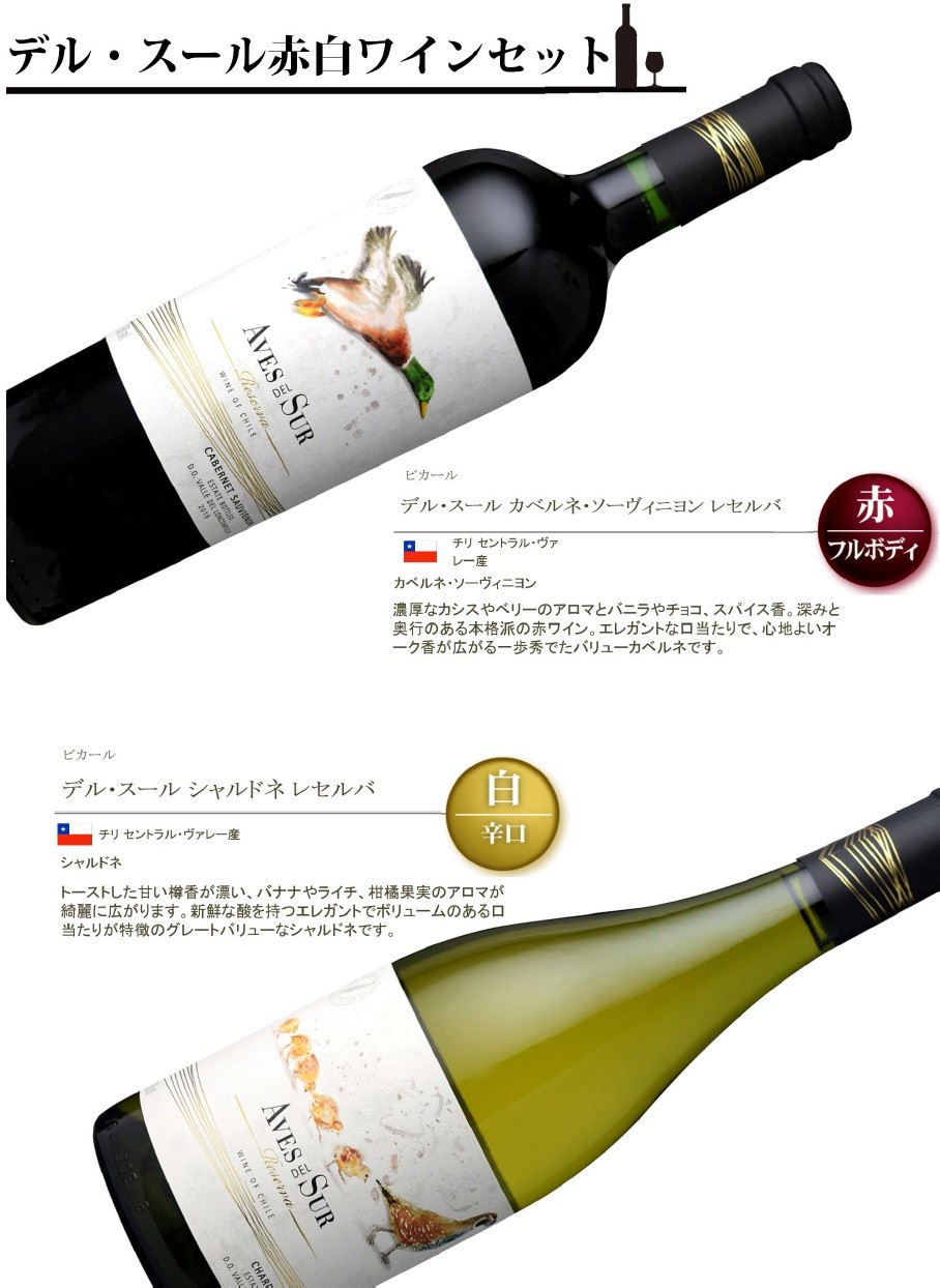 ◆チリ セントラル・ヴァレー産 紅白セット コスパ抜群の超・旨安、赤ワイン1本と白ワイン1本のセットです。