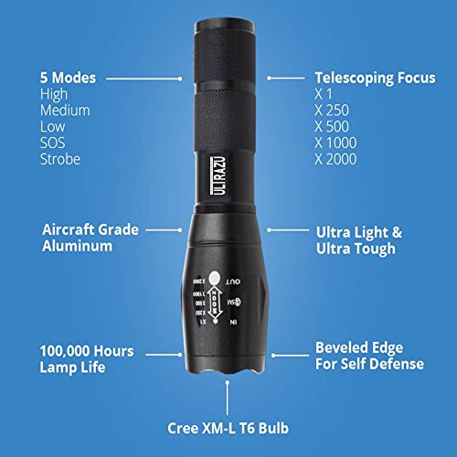 ✅ NO QUESTIONS 30-DAY MONEY BACK GURANTEE: At Ultrazu we take pride in the quality and craftsmanship of our zoomable tactical LED Flashlight and we always strive to improve it. If you are not 100% thrilled with it, please feel free to contact us to resolve the issue or return it within 30 days and you will be fully refunded.