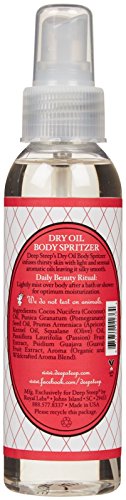 This strong and stylish body spritzer from Deep Steep lets you experience pure luxury with our fast-absorbing, non-greasy Dry Oil Body Spritzer. Add supreme hydration to your skin with Coconut, Pomegranate, Apricot Kernel and Olive Oils, and awaken your senses with any of our five deliciously natural fragrances. Make this part of your morning luxe routine and enjoy smooth, supple, lightly fragranced skin throughout the day.Feature