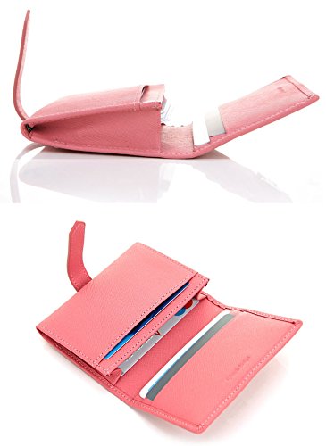 Womens Genuine Leather Name Card Holder Card Case Business Card Wallet (Hot Pink)