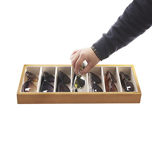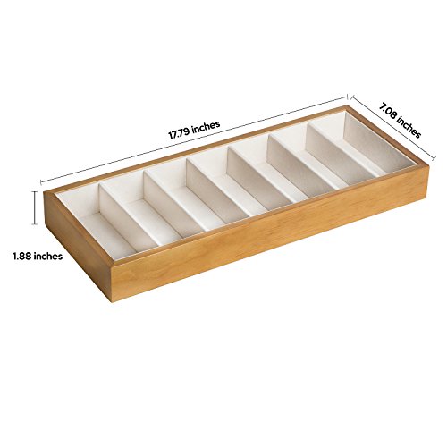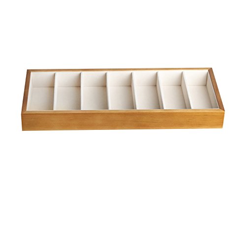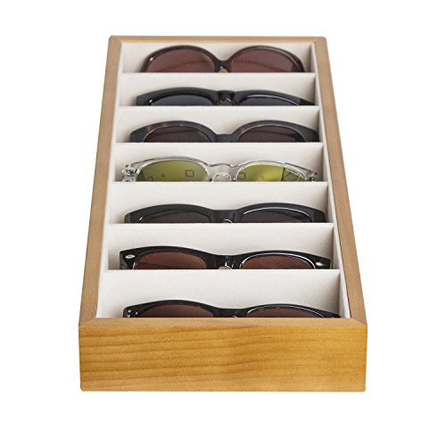 JackCubeDesign Wood 7 Compartments Eyeglass Display Organizer Eyeglasses Sunglass Storage Case Box Eyewear Tray Stand Open Top Suede Inside(17.8 x 7.1 x 1.9) – MK374A