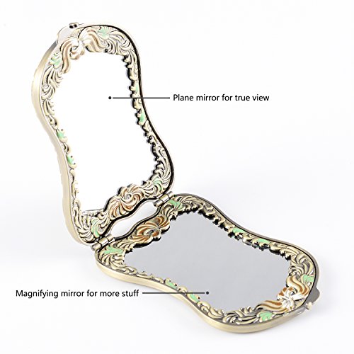 - ITEM SPECIFICS -- Super-compact, two-sided travel mirror, easy be carried inside your bag wherever you go! Featuring a magnifying glass on one of the sides, a normal glass on the other side, it¡¯s perfect for seeing with perfect clarity every detail on your face, women used compact mirrors to refresh their makeup