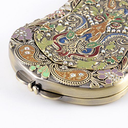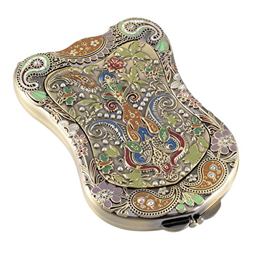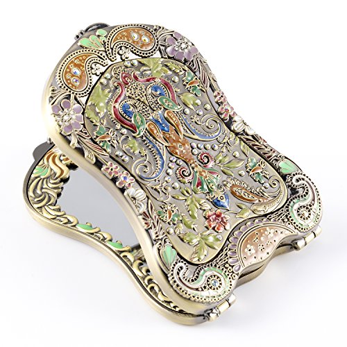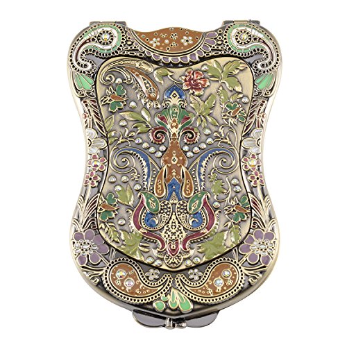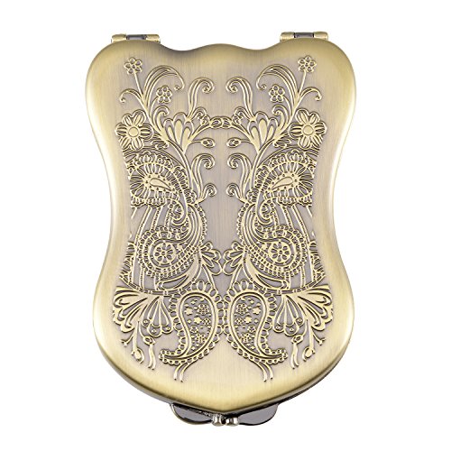 Nerien Women's Magnifying Vintage Foldable Antique-style Shield Vanity Mirror Cosmetic Purse Mirror Portable Travel Mirror Bronze