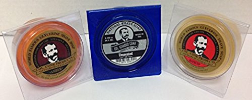 - Variety of three different fragrances. Each shaving cake is 2.25 ounces
