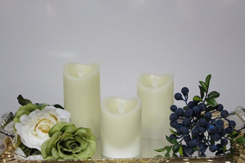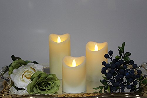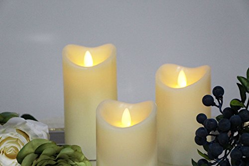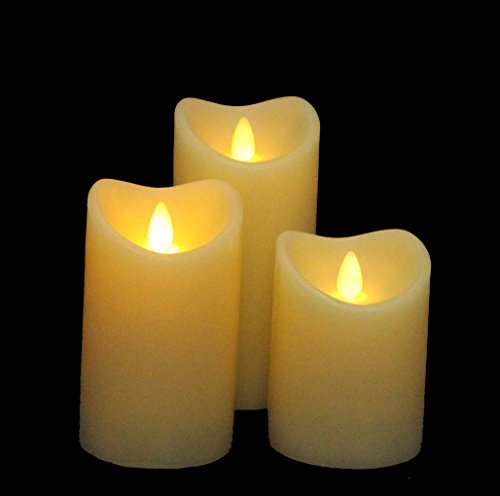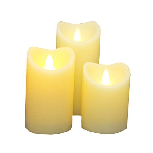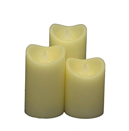 Flameless Real Wax LED Pillar Candle with Timer, Flickering Moving Flame, Set of 3, Work with 2 AA Battery (Ivory)