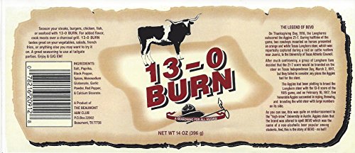 13-0 Burn - A perfect spice blend created to flavor steak and burger even a Texas Longhorn Steer. A must have at every Aggie football tailgates, adds GIG-EM to yard bird, fish and pig