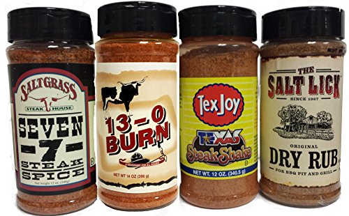 Four Horsemen Steak Spice Assortment, Saltgrass Seven 7 Steak Spice, Salt Lick Original Dry Rub, Tex Joy Texas Steak Shake, 13-0 Burn for Seasoning for Steers