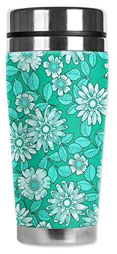 Mugzie brand 20-Ounce Travel Mug with Insulated Wetsuit Cover - Green Flowers