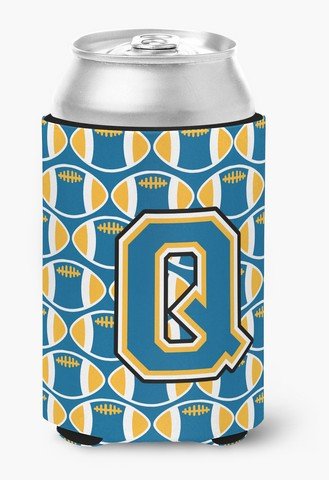 Caroline's Treasures CJ1077-QCC Letter Q Football Blue and Gold Can or Bottle Hugger, Multicolor