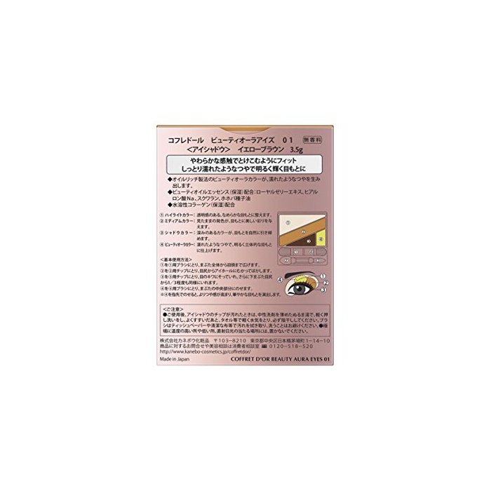 상품명:카네보우(Kanebo) 코프레 돌 COFFRET D''OR 뷰티 올라 아이즈(eyes) 컬러 01 옐로우 브라운 02 핑크 브라운 03 카키 04 보르도 05 골드