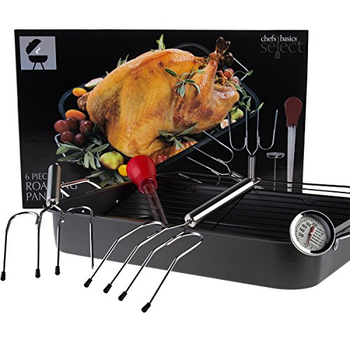 Studio : Chefs Basics Select Publisher : Chefs Basics Select Product Description In this 6 piece Roasting Pan Set, Chefs Basics Select has selected all the basics needed for successful roasting, for the beginner or experienced chef. This pan also has a non-stick surface, just in case things get sticky. 0