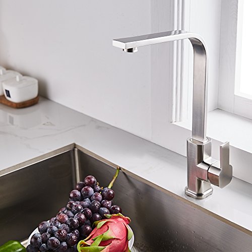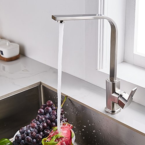 Trywell T304 Solid Stainless Steel Modern Kitchen Sink Faucet 90 Degree Single Handle Bar Faucet, 1.8 Gpm