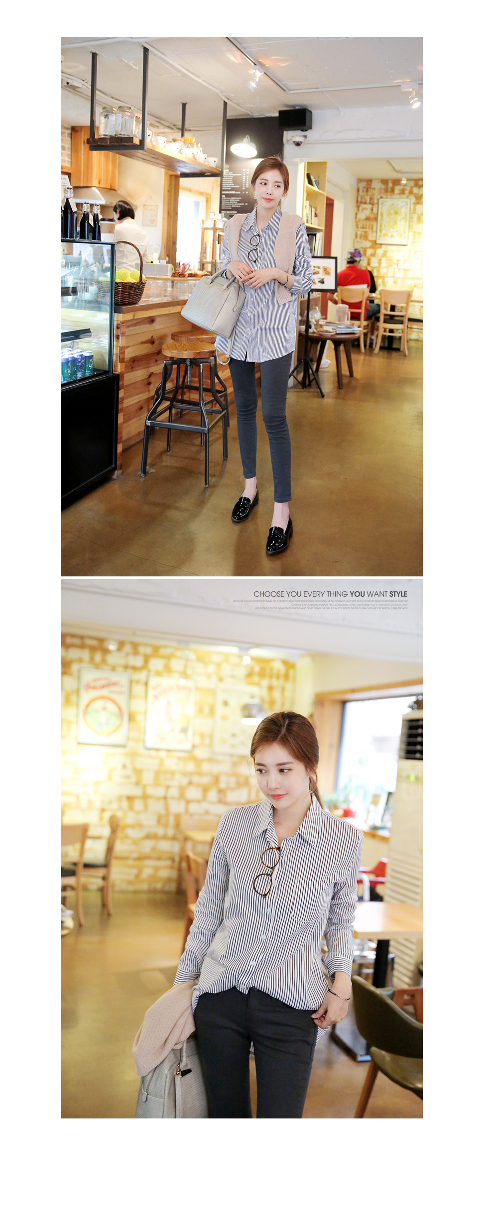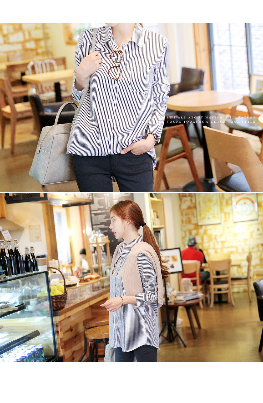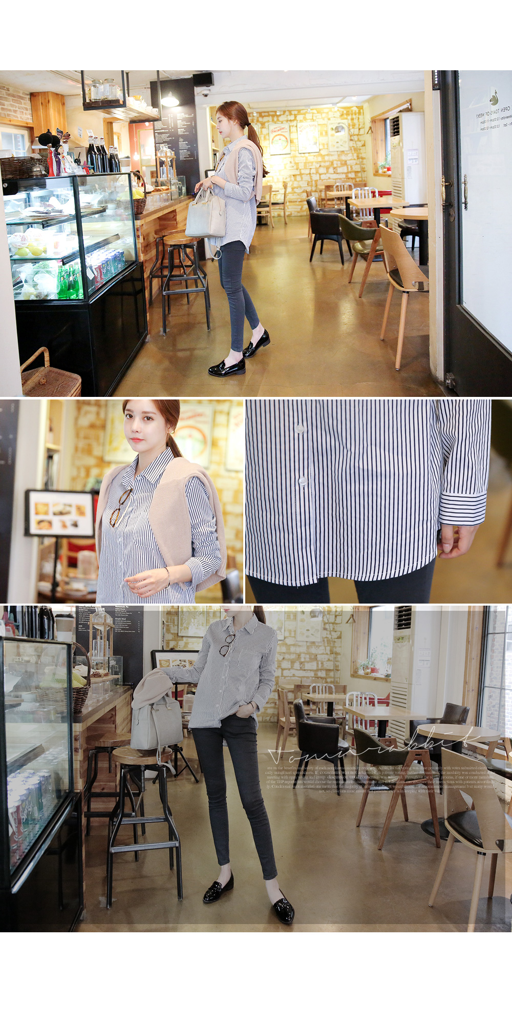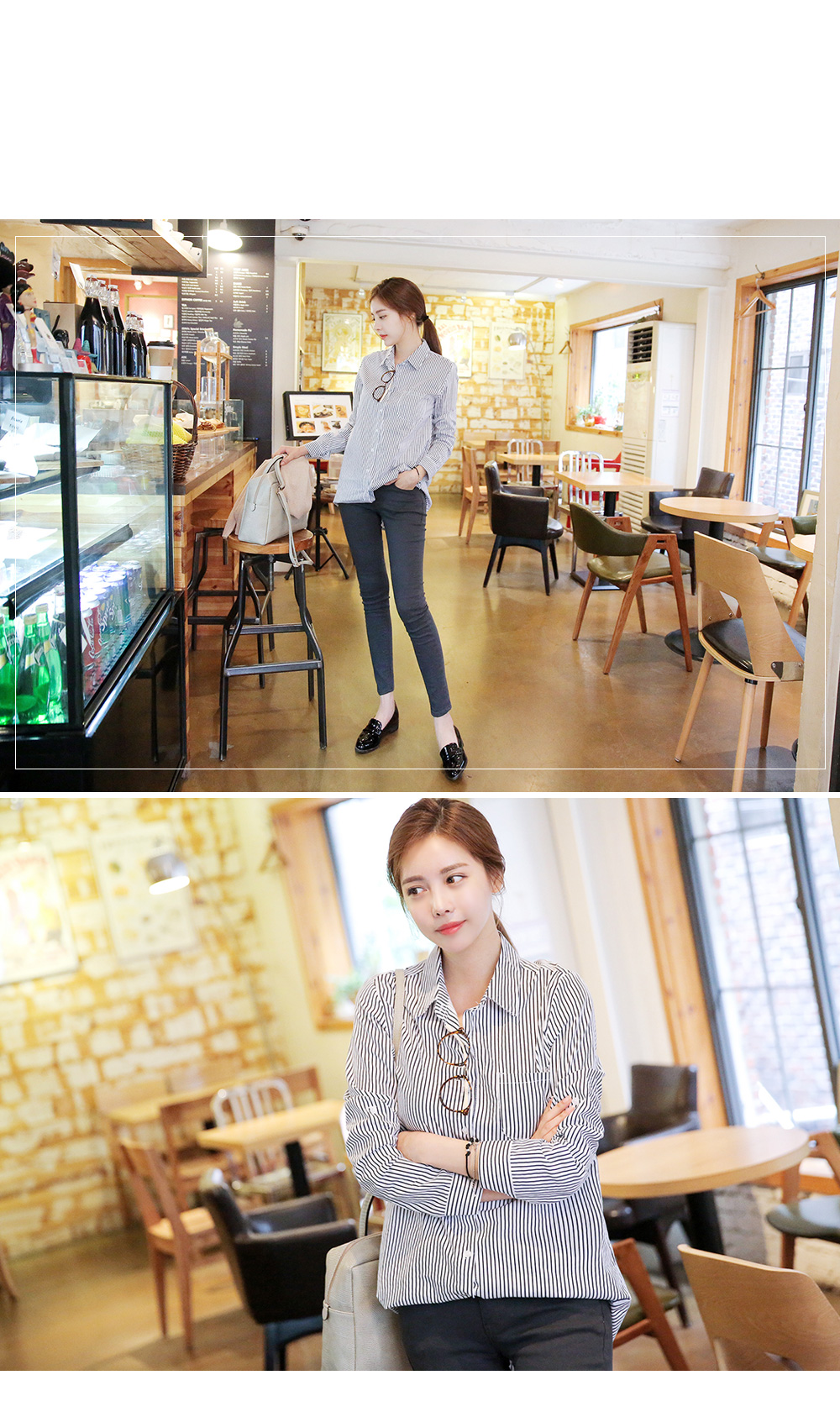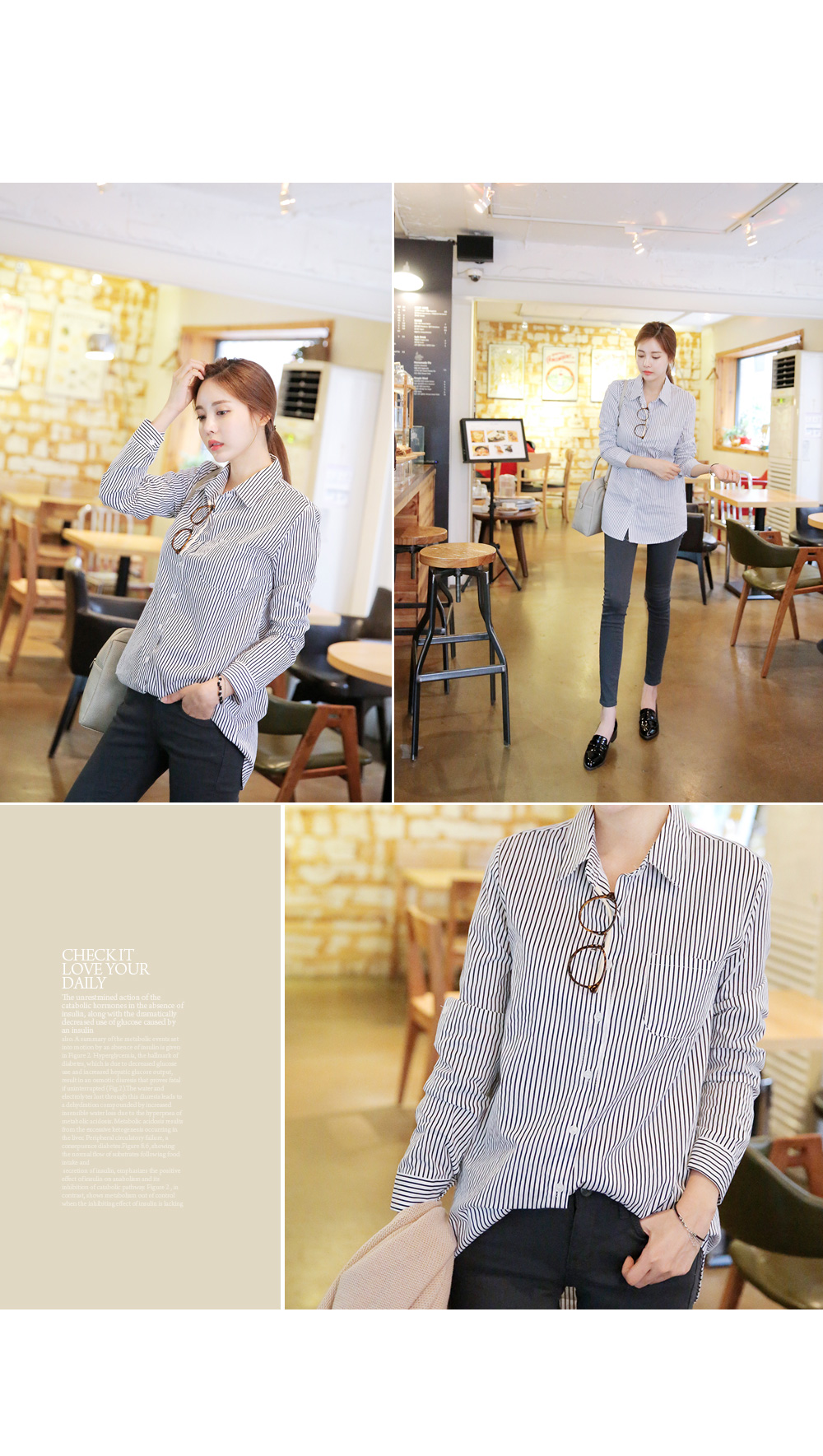 세련된 느낌의 스트라이프 블라우스 하나 소개해드려요~~