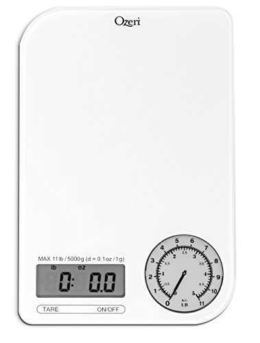 Ozeri ZK18-WG Rev Digital Kitchen Scale with Electro-Mechanical Weight Dial, Gray Dial