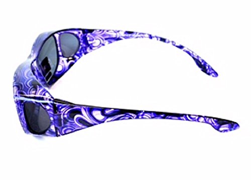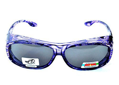 Product Description Fit Over sunglasses are perfect for anyone who wants the benefit of sun protection while wearing their prescripton glasses. They're lightweight and easy to slip on over your prescription glasses. These glasses are designed to wrap around your face blocking the sun from the sides as well which allows for an inexpensive alternative to expensive prescription sunglasses. All sizes are polarized which will increase clarity, reduce eye fatigue, and glare protection while golfing, driving, and all water sports. 0
