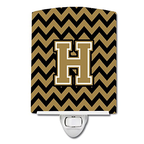 Caroline's Treasures Letter H Chevron Black and Gold Ceramic Night Light, 6 x 4", Multicolor