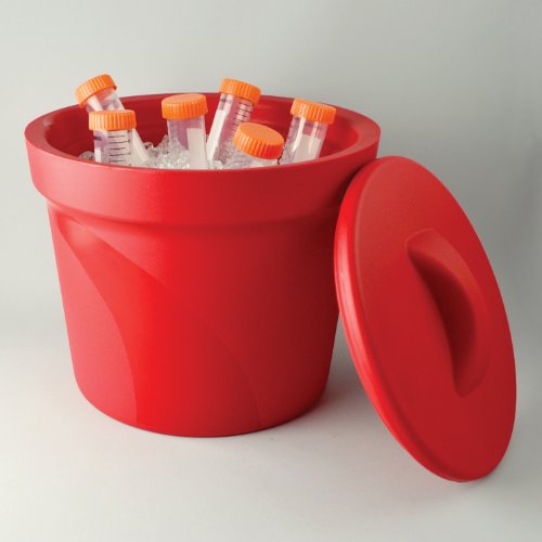 - 4L round ice bucket with lid for holding wet ice and ultra-low temperature materials including dry ice, ice-salt slurries, dry ice solvent slurries, or liquid nitrogen