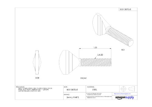 Steel Thumb Screw, Zinc Plated Finish, Spade Head, Flat Point, Meets IFI 156, 1" Length, 1/4"-20 UNC Threads, Imported (Pack of 100)