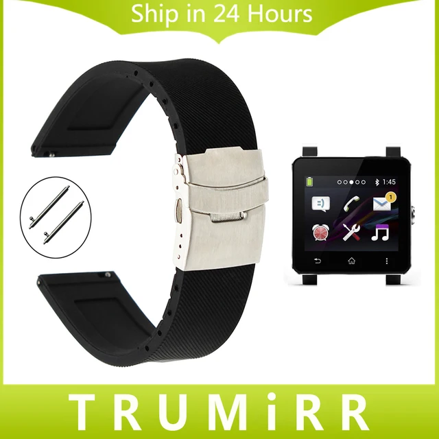| [해외]24 미리메터 실리콘 고무 시계 밴드 빠른 릴리스 스트랩 sony smartwatch 2 sw2 스테인레스 스틸 안전 버클 벨트 팔찌 블랙 |