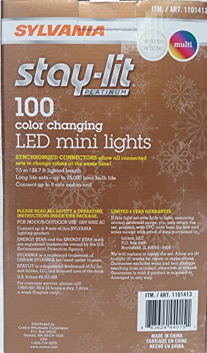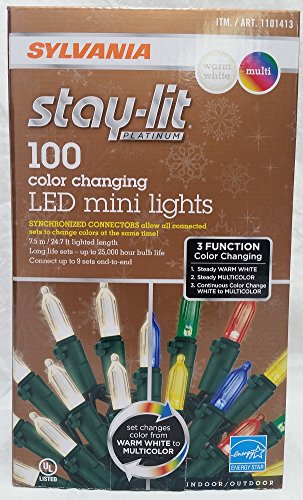 Sylvania Stay-Lit Platinum 100 - 3 Function Color Changing LED Mini Lights - Warm White & Multi - 2017 New & improved Connectors