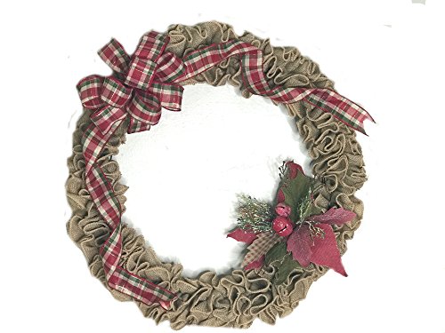Poinsettia Plaid Burlap Christmas Wreath- 18 inches