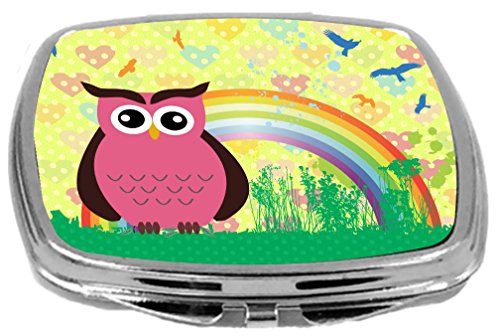 Rikki Knight Compact Mirror, Pink Owl on Rainbow Hearts, 3 Ounce