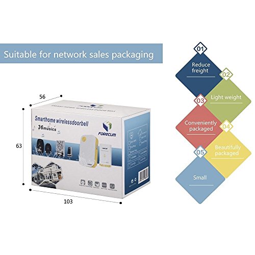 -. Feature : Tones Kinds: 36 songs, Operating frequency: 315MHZ, Voltage: AC 220V / Operating current: ≤120mA, Quiescent current: ≤120mA(220V), Power: ≦2W, Controlled volume: 25-80dB / Plug: EU plug (US buyer need a EU to US converter, not included) / Quantity: 1 set (as picture show) / Note: Due to the difference between different monitors, the picture may not reflect the actual color of the item. Thanks for your understanding.