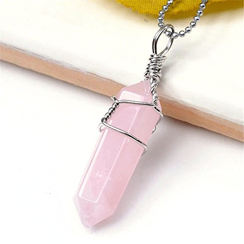 Ayliss Wire Wrap Gemstone Crystal Quartz Healing Point Chakra Pendants for Necklace (Rose Quartz)