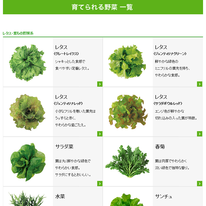 ●栽培数(間引き後):レタス・葉もの野菜系:4株、ベビーリーフ系、ハーブ系:9株
