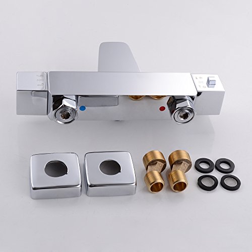 KES European Style Thermostatic Bathroom Bathtube Shower Faucet Tub Filler Wall Mount, Polished Chrome, LM500