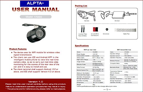 ALPTA 170403 WIFI Vehicle Car Backup Camera