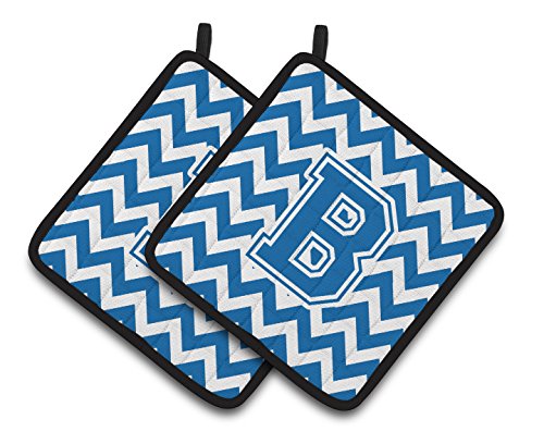 Caroline's Treasures Letter B Chevron Blue & White Pair of Pot Holders CJ1056-BPTHD, 7.5HX7.5W, Multicolor
