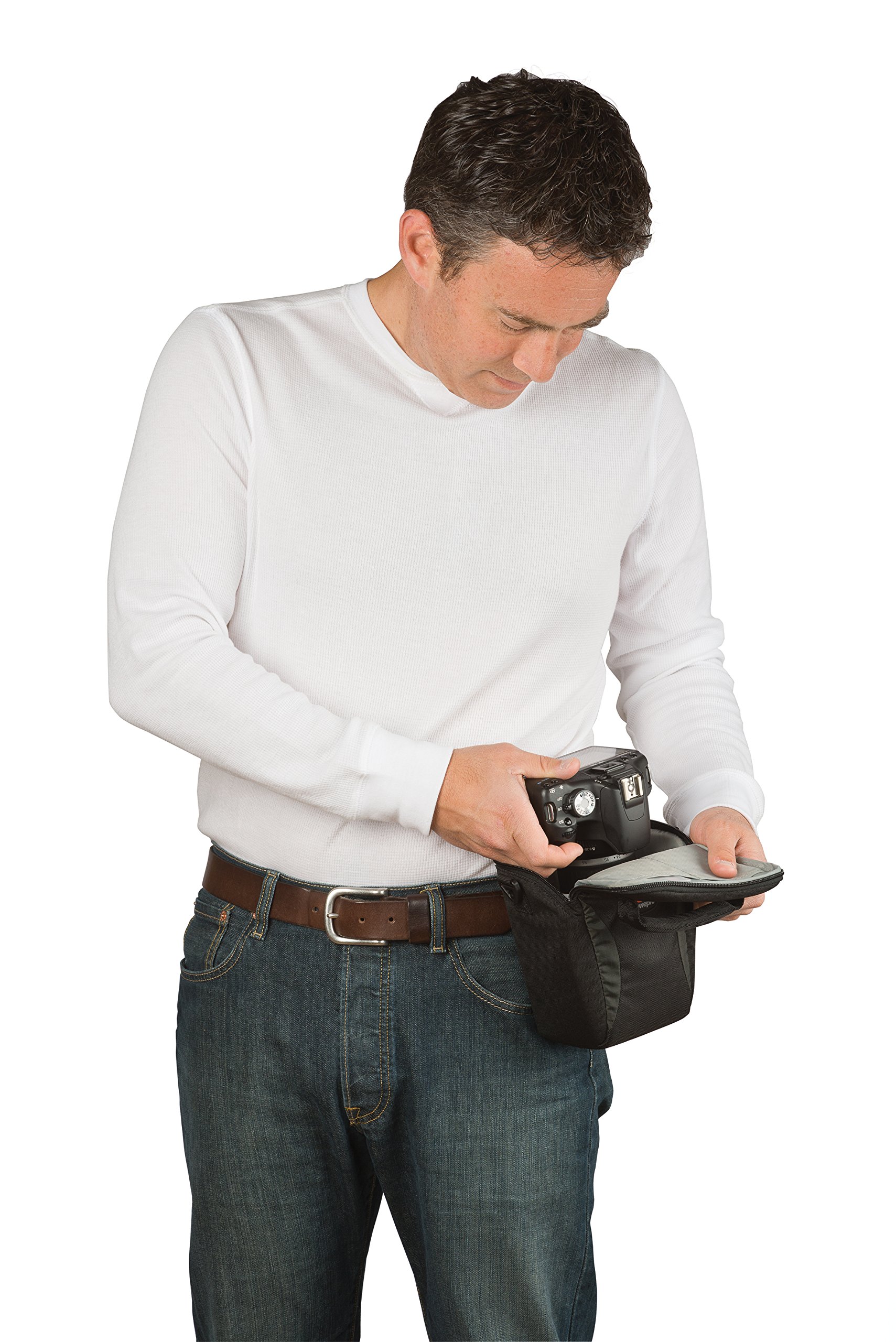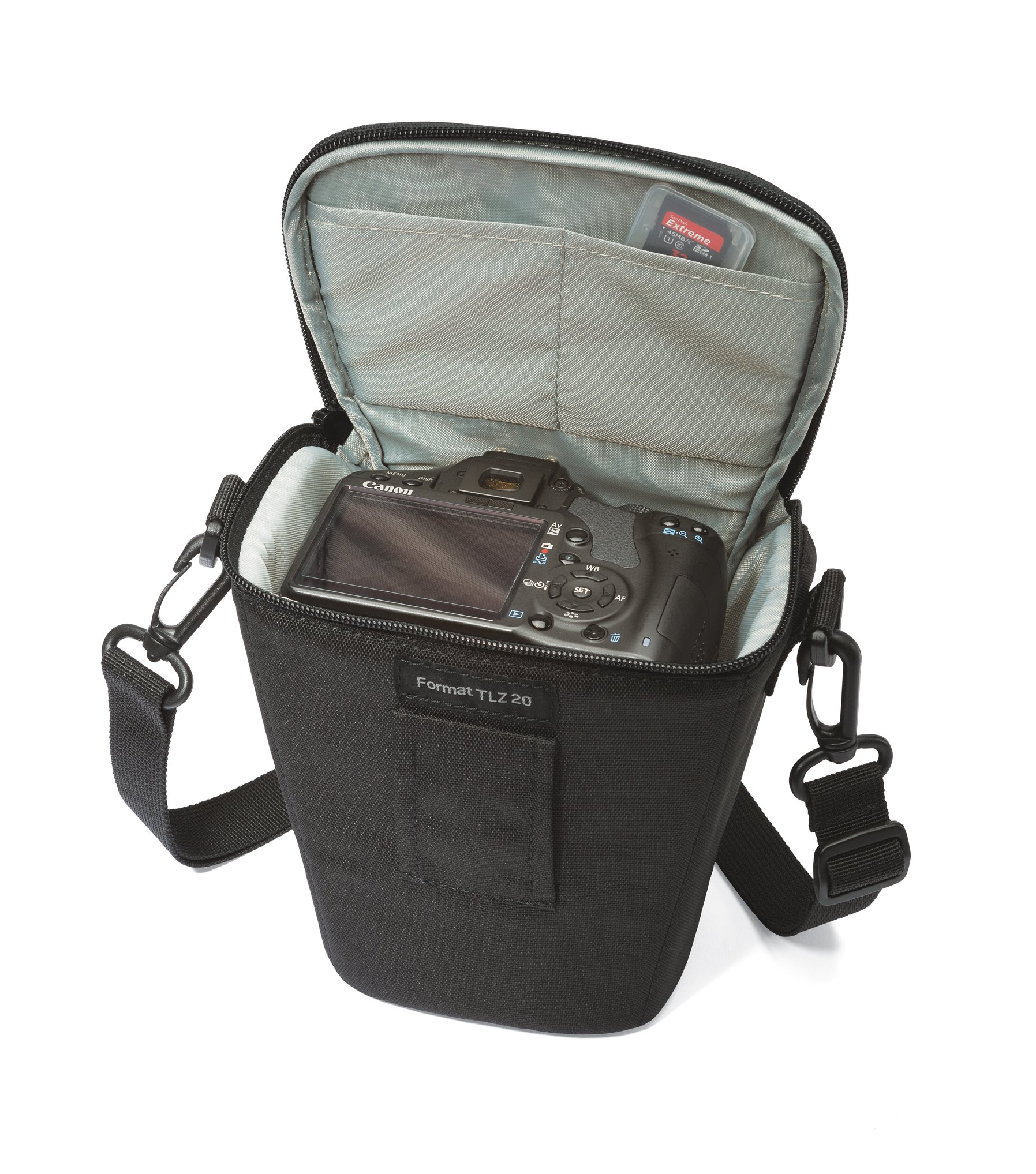 Top load type camera bag that makes it easy to access equipment.