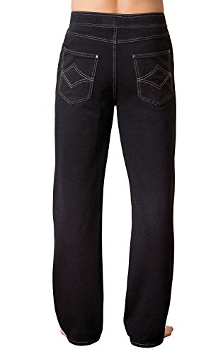 -. Binding : Apparel -. Brand : Pajama Jeans -. Department : mens -. Feature : Inseam: 32" (30" for size S) / Straight legs / Five-pocket designer detailing / Dormisoft® Denim (95% cotton/5% spandex) -. Label : The PajamaJeans Company -. Manufacturer : The PajamaJeans Company -. Model : GKPJ03664 -. ProductGroup : Apparel -. ProductTypeName : PANTS -. Publisher : The PajamaJeans Company -. Studio : The PajamaJeans Company -. Title : PajamaJeans - Straight Leg Black Knit Denim Jeans for Men