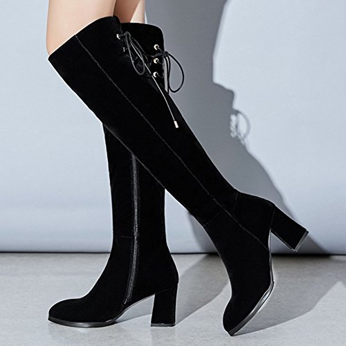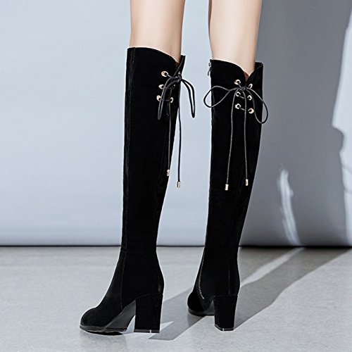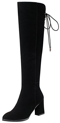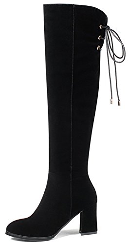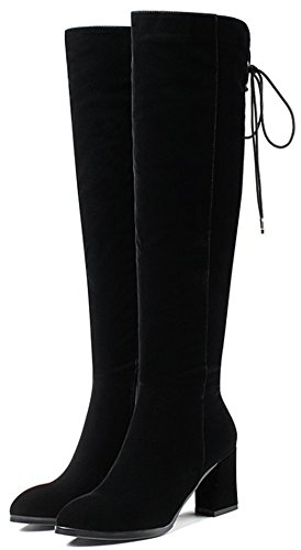 (Mofri)/Women's/Boots/DIRECT FROM USA/Mofri Women's Stylish Faux Suede Round Toe Block High Heel Lace up Knee High Riding Boots With ...