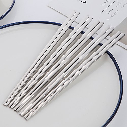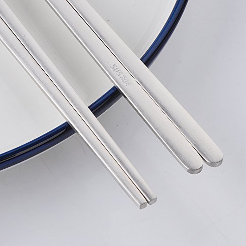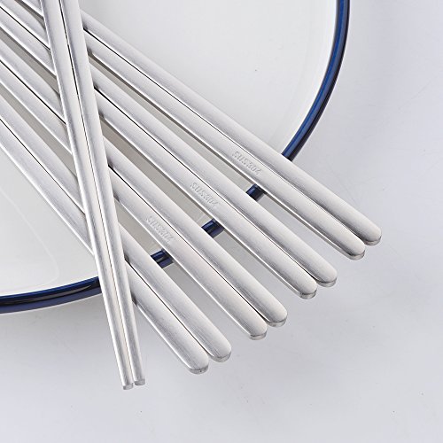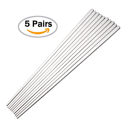 Buyer Star 5 Pairs Matte Metal Chopsticks, Silver Reusable Stainless Steel Korean Chopstix for Ramen noodle 9.05-Inch