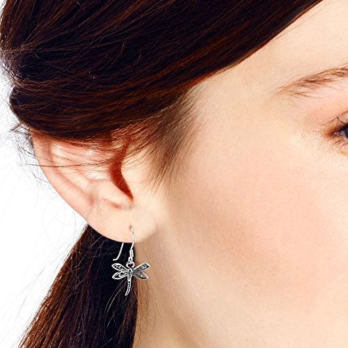 A gleaming fliligree dragonfly from sterling silver .925 dangles upon this earring set crafted by Thailand based silversmith Khun Kung. The dragonfly dangles upon a fish hook closure and is meticulously engraved and embellished with oxidized contrasts for PLEASE NOTE: The handcrafted nature of this product will produce minor differences in design, sizing and weight. Variations will occur from piece to piece, measurements may vary slightly.AERAVIDA works directly with gifted and talented Artisans from all over the world. At the core of our philosophy is fair trade and fostering a sustainable future for our Artisans.