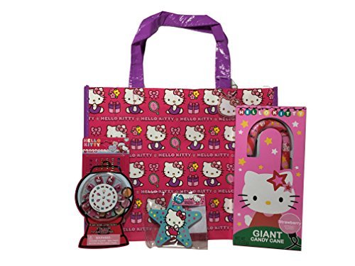 Hello Kitty Nail Kit with Reusable Tote, Giant Candy Cane and Keychain Notepad Bundle of 4