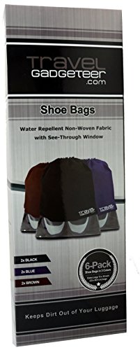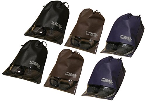 -. Brand : Travel Gadgeteer -. Department : unisex-adult (lage only) -. Feature : LIGHT & ECONOMICAL | 6 Shoe bags | Lightweight - Yet Tough Enough to Protect Your Shoes from Scrapes and Scuffs when Traveling (2 Black, 2 Navy Blue, 2 Brown) / SEE-TROUGH WINDOW | Plastic Window Allows Bag Contents to be Identified Easily / EXTRA LARGE | These Bags Accommodate Larger Shoe and/or Items | 13 x 16 in. (33 x 40.5 cm) - Can Fit a Pair of Size 11.5 (US) or Size 44 (EU) Dress Shoes Side-By-Side / DRAW STRING + LOCKING CLIP | These Shoe Bags are Equipped with a Drawstring with Locking Clip so that Your Shoes Stay in the Bag and the Dirt Out of Your Lage / WATER REPELLENT | Breathable, yet Water Repellent (Not Water-Proof) Non-Woven Light Fabric Material is Designed to Keep Any Residue from Streets Away from the Rest of Your Belongings -. ProductGroup : Apparel -. ProductTypeName : LAGE -. Title : Shoe Bags (6-Pk) + SEE THROUGH WINDOW | Large | Keeps Dirt Out of Your Lage