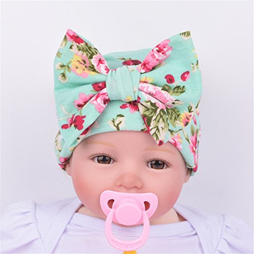 | Ever Fairy Infant Baby Girls Floral Print Nursery Newborn Hospital Hat Cap with Big Bow |