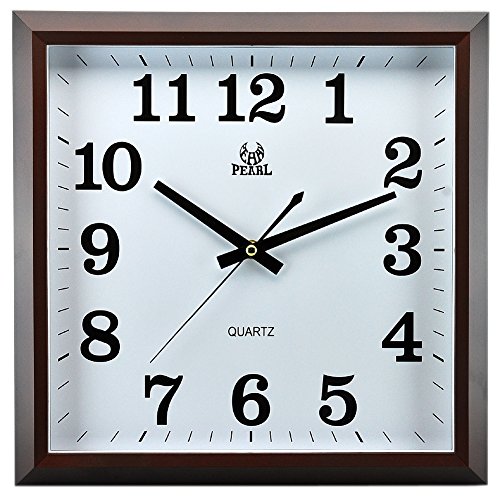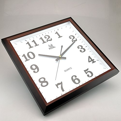 -. Binding : Kitchen -. Brand : Pearl -. Color : Brown -. Feature : Approximately measures 34.5 x 34.5 x 4.97 cm / Simplicity in design offers quick and easy installation / Back nail slot makes it easy to hang on walls / Flat lens covers clock face to protect from dust and debris -. IsAutographed : 0 -. Label : RUHE -. Manufacturer : RUHE -. ProductGroup : Home -. ProductTypeName : HOME -. Publisher : RUHE -. Studio : RUHE -. Title : 13.5 Inch Modern Non Ticking Silent Quartz Analog Digital Square Wall Clock