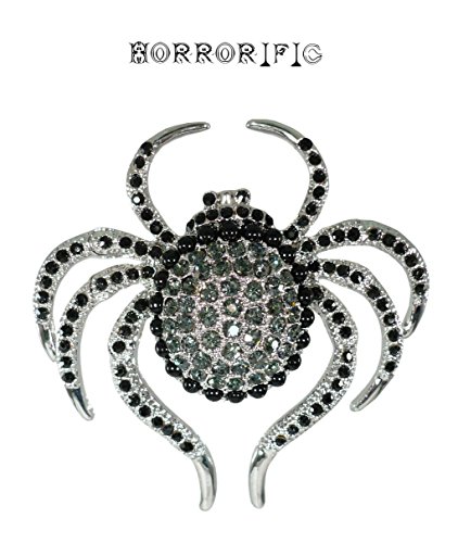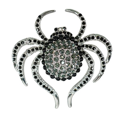 Silvertone base metal with black and gray genuine rhinestones, black opaque stones