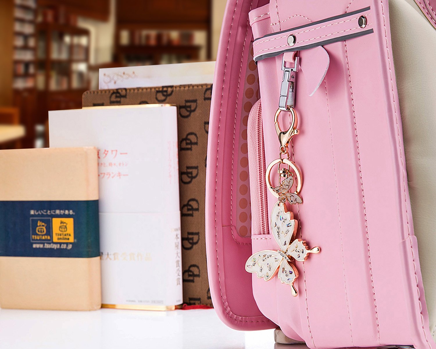 Bag charm key chain key ring was a butterfly motif