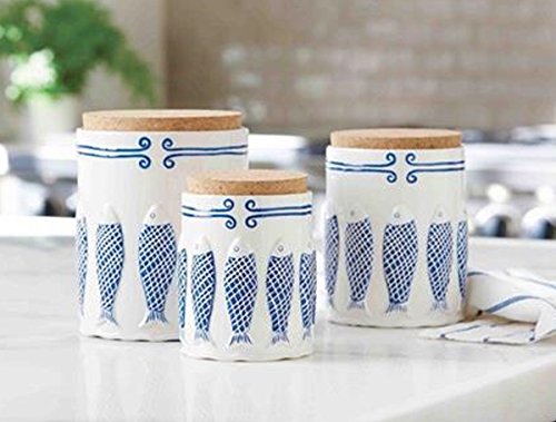 Mud Pie Fish Canister Set, Ceramic, 3-piece