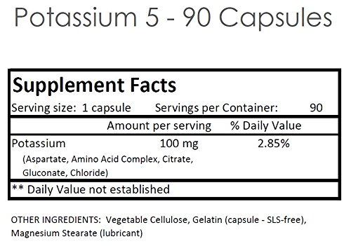 Product DescriptionFive types of Potassium in one convenient capsule - Aspartate, Amino Acid Complex, Citrate, Gluconate, Chloride0