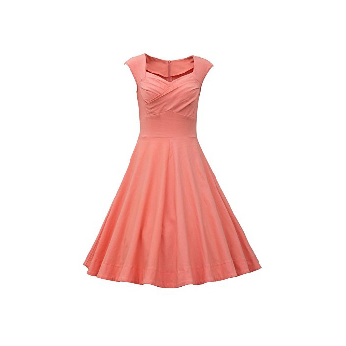 Dresstell(드레스《데루》) 레디의 엘레강트순색꽃무늬 물방울무늬 컵수 셔링 V넥 스윙 미디 원피스 결혼식 드레스 여성 정장 코랄 XXXL사이즈