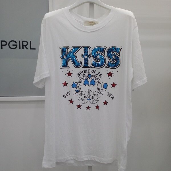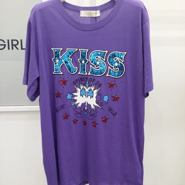 스팽글로 포인트를 준 기본 스타일 면 티셔츠 입니다