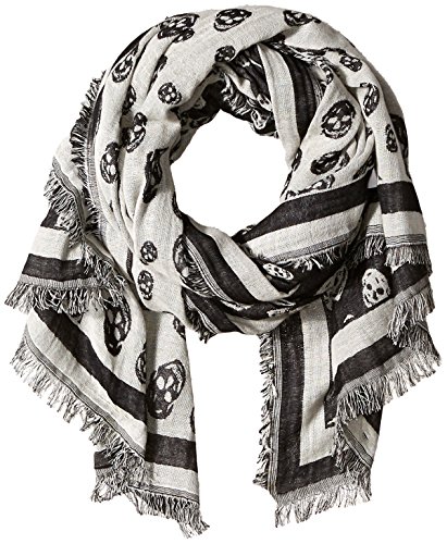 Product DescriptionWomen's all-over skull printed jacquard wrap with fringe0