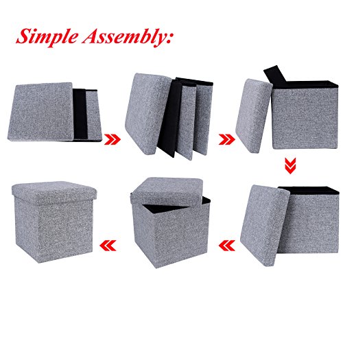 - Feature : SELECTED MATERIAL - 15" cube, breathable linen-like fabric, E1 standard MDF, flame retardant foam / HEAVY-DUTY -Solid sturdy construction with removable lid, static load capacity up to 660lbs / DECORATIVE APPEARANCE - Comfortable cushioned Linen-like fabric upholstery top appears classic, perfectly matching linen/micro fiber couch, gliders, fits in both home and office / VERSATILE USAGE - Serve as storage bins, footrest stool, providing ample hidden storage space to declutter your room / THOUGHTFUL DESIGN -Collapsible storage ottoman, easy to assemble and fold flat, space-saving when not in use